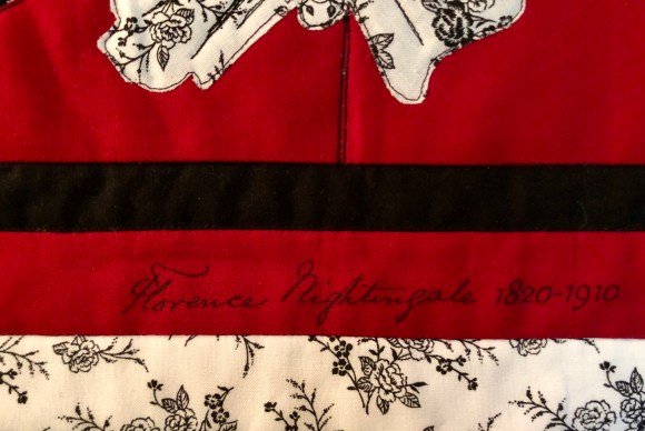 I am really proud of this little quilt. It was a real stretch for my skills. It is raw-edge applique based on a photo and poster. The hardest part was replicating Florence Nightingale’s signature.