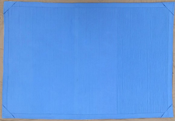 I’m not in love with this quilt and I’m not at all upset that it was rejected. In fact, I would not accept it. The spacing is off. I had a great idea, but couldn’t execute it. This is what I did with the pieces left over. I have found that it is the perfect size for a lap quilt at my desk, so it is getting a lot of use.