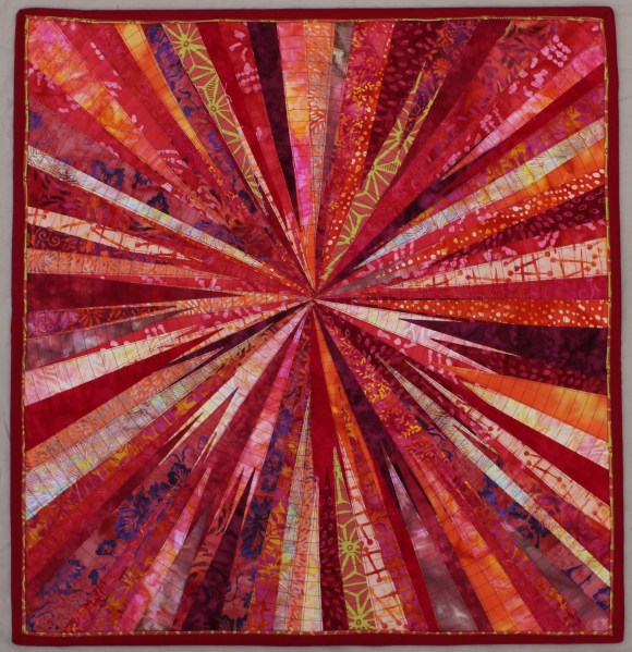 This is a huge step for me – it will be the first time I have a quilt displayed in a juried show. I am really excited, and humbled. I don’t think my work is “good enough” to be in a show. I see all the flaws, corners that don’t match and things I would do differently. I was sure the holes in the corner from the push pins I used to display this quilt would keep it from being considered. But I am glad that someone sees something interesting in my quilt. I am looking forward to QuiltCon Together in February. I will let you know how it goes.