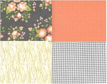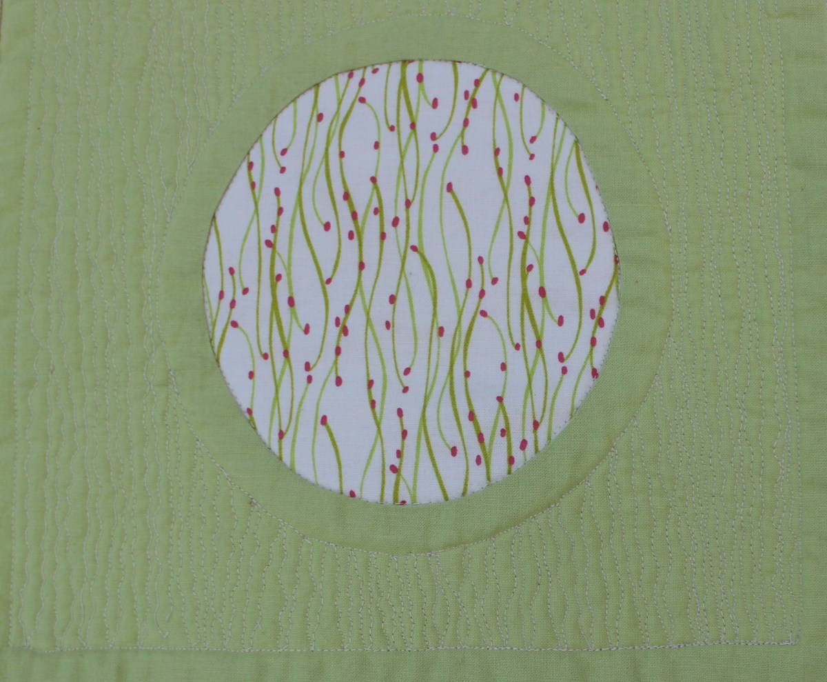 I am used to juggling a lot of deadlines, but then I had one unexpected quilty deadline thrown in just before Thanksgiving. I can’t tell you more about it yet, but it meant pushing back my other quilting projects by 2-3 days. While that doesn’t sound like a lot, it was 2-3 days I planned on spending on other projects. I was committed to submitting to QuiltCon because I accepted the fabric packet for the Modern Quilt Guild Floral and Vine Fabric Challenge. By accepting the packet of these lovely fabrics, I agreed to submit a quilt. The rules were simple – I needed to use 3 of these 4 fabrics, could add any solid I wished and any size up to 440 inches in diameter.