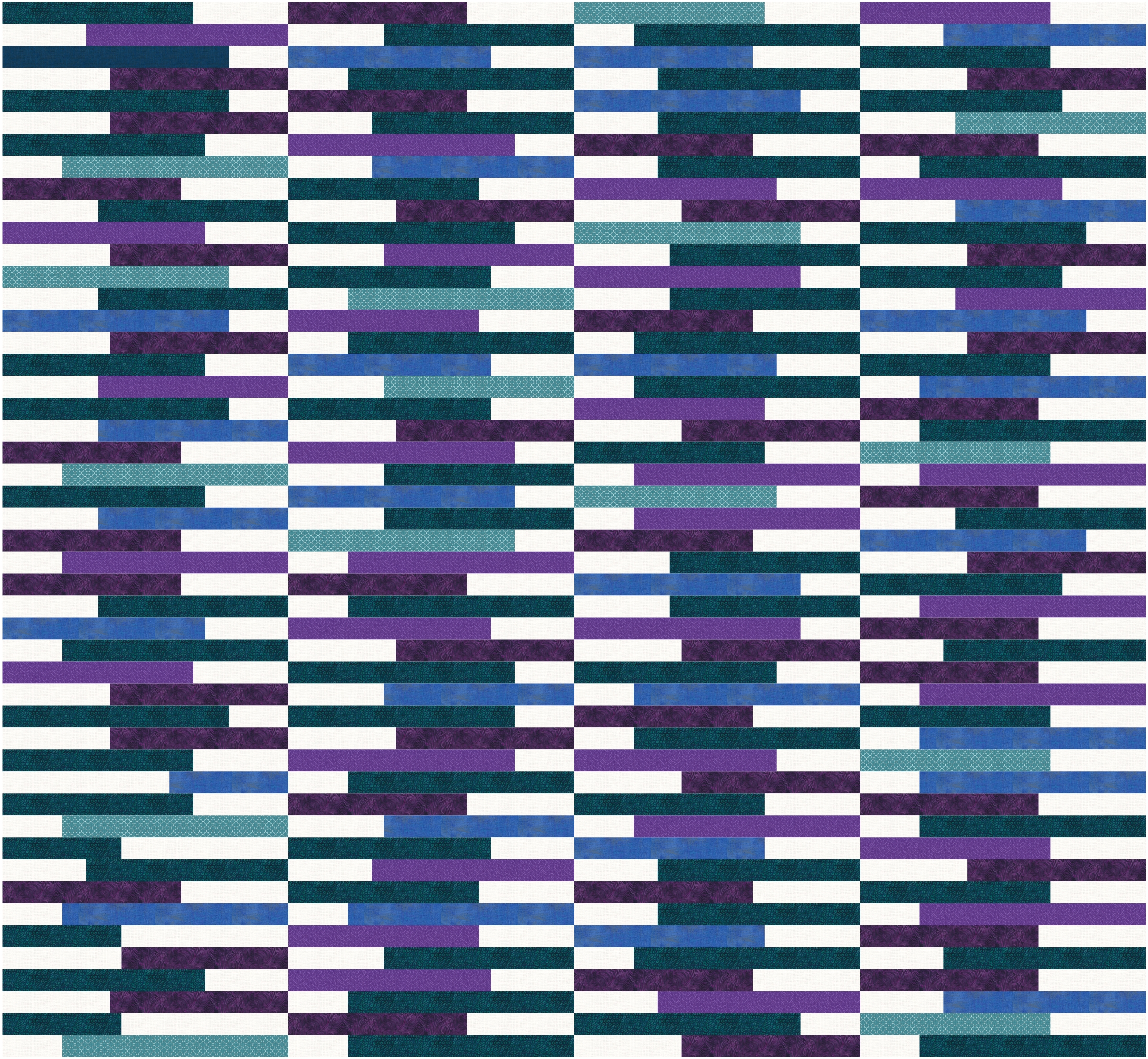 Assemble the quilt in four rows of three blocks each.